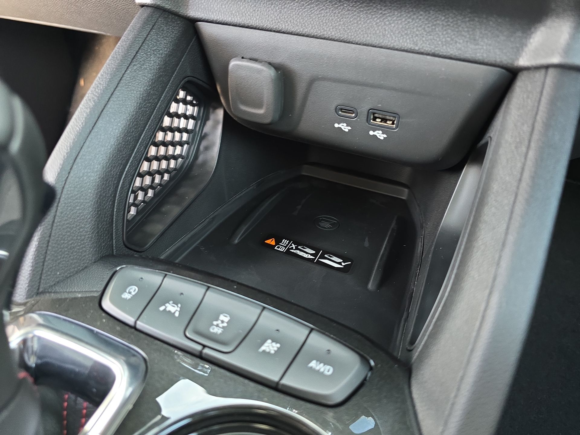 - One type-A and one type-C charging only USB ports1, located on rear of center console