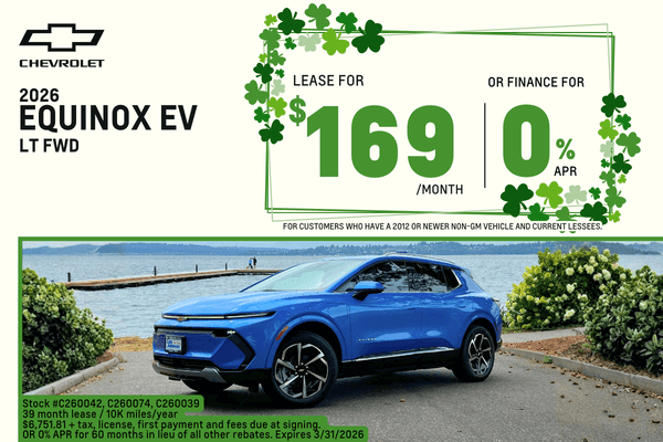 2026 Chevrolet Equinox EV LT FWD Lease for $169/month plus tax OR 0% ARP to 60 months!