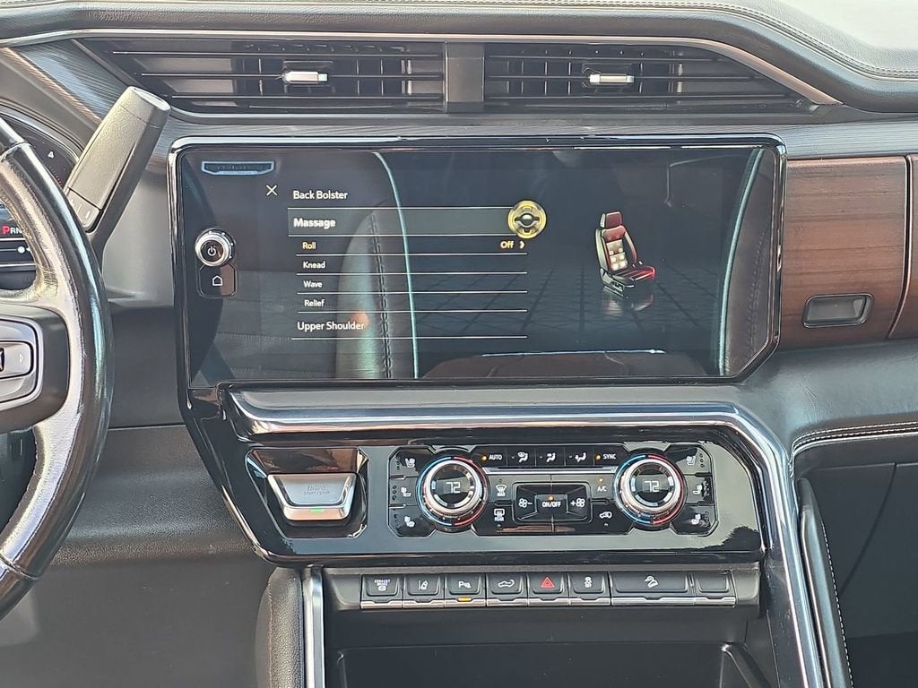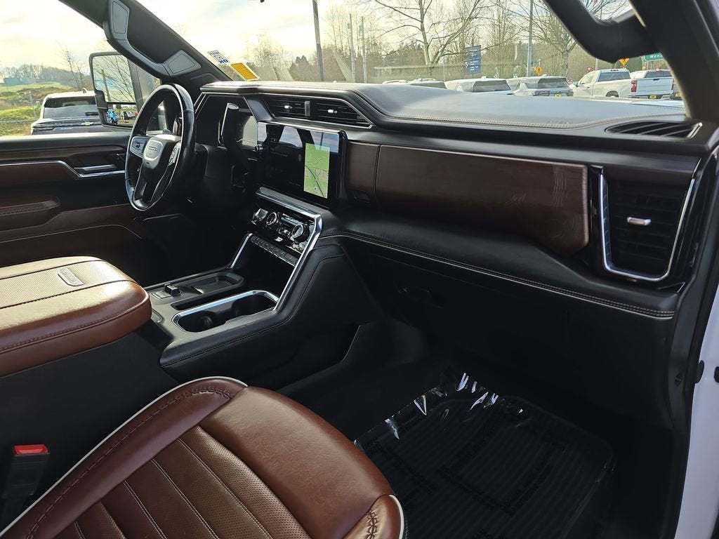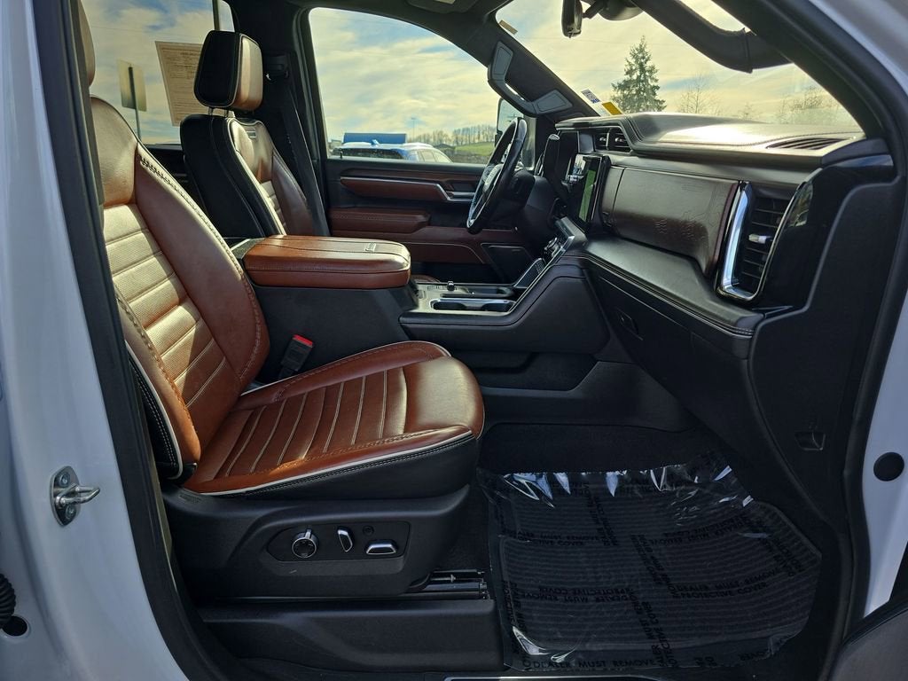 The Denali Ultimate trim sets a new standard for luxury in a heavy-duty truck. Inside, youll find an opulent cabin featuring full-grain leather seating, authentic open-pore wood accents, and premium aluminum details. The 16-way power massaging front seats, Bose Premium sound system, and advanced infotainment with a massive 13.4-inch touchscreen ensure every drive is as comfortable as it is commanding. A 15-inch head-up display, digital rearview mirror, and surround vision camera system provide cutting-edge technology for ultimate convenience and safety.
